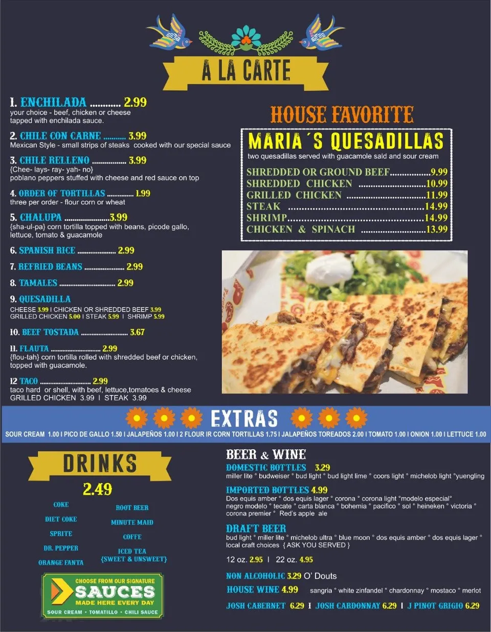 At Maria’s Cocina Mexicana, we bring the vibrant flavors of Mexico to your plate. From cherished family recipes passed down through generations to creative twists on traditional dishes, every bite tells a story of rich heritage and culinary passion.